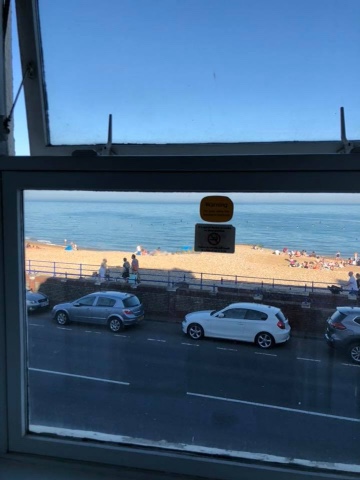 As I mentioned, Eastbourne has a treasure trove of hotel options right on the seafront. Of course I will always gravitate towards the Victorian baronial ones, preferably with Queen in their names but the aforestated budget was precluding these from the list. We settled on Shore View Hotel. It was nothing fancy, but it was clean and had a view. Now that we had secured a hotel for the night it was time to walk back to the car park to get our luggage. Again, this is where the lack of parking situation becomes a bit of a farce. The car park was a little under half a mile from the hotel which meant we were wheeling our suitcases through the crowds on the sidewalk, dodging venders and barely clothed beach goers. Lot's of "excuse me.", "pardon me.", "on your right.", kind of things going on all the while the wheels of our suitcases were noisily bumping along, ocassionally thumping our ankles. Half a mile isn't a long distance but it sure feels like it when you are limping on a broken toe with an unruly suitcase bouncing around behind you.
